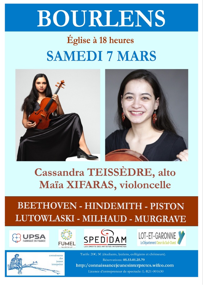 Dans l’attente de vous retrouver nombreux dans l’église (chauffée) de Bourlens, nous vous adressons nos sincères amitiés musicales.