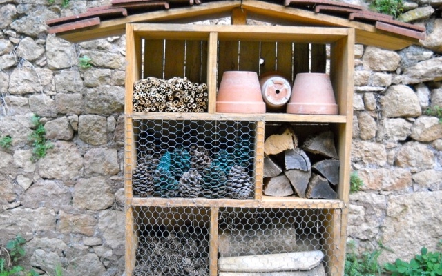 Pour attirer les insectes utiles au jardin, il a été décidé d’installer un hôtel avec des refuges conçus pour les héberger.